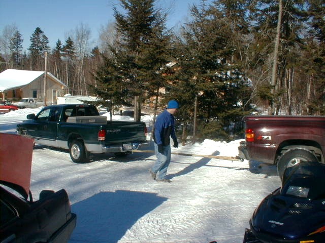 We arrived at Cedar Ridge in Jackman about 11:30 am and 'G'got his truck stuck in the parking lot for the 2nd year in a row.
