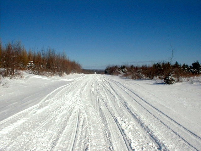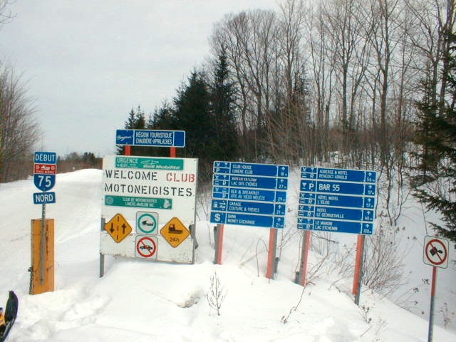 The trails heading out of town were in pretty good shape and were obviously groomed last night. We screamed towards the boarder on ITS-89. When we reached the boarder we were held up at immigration for about ½ hour. They put us through the paces and asked a lot of questions. I figured the security at the boarder was tougher due to Sept. 11th. We chased each other down the long straight and flat stretches to the clubhouse where we ate and registered for the day.